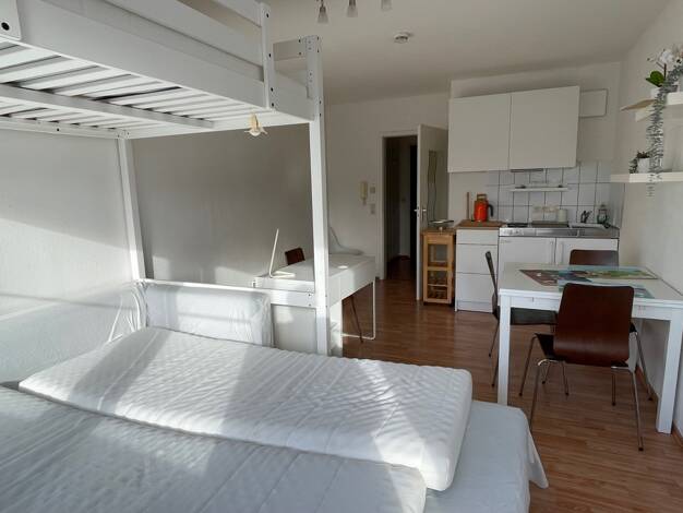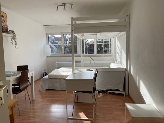 Angeboten wird eine möblierte Zwei-Zimmer-Wohnung mit Aufzug und Balkon in ruhiger Lager zum Innenhof in Augsburg, Universitätsviertel. Die Wohnung ist 55,79 m² groß. Küche: Herd, Ofen, Mikrowelle, Spülmaschine, Kühl-Gefrierkomi. Kleingeräte, Besteck und Geschirr auf Anfrage. Essplatz mit vier Stühlen. Wohnzimmer: Fernseher, Couch, Tisch und Wohnwand Balkon: Tisch mit zwei Stühlen. Schlafzimmer: Bett, zwei Nachtkästchen, drei Meter Kleiderschrank mit Spiegel und ein Stehregal für weiter Stauflä...