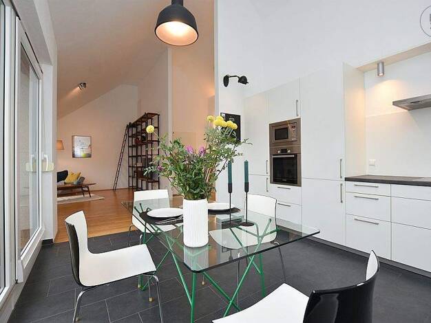 +++++++ Dieses Objekt kann nur möbliert angemietet werden +++++++ Hochwertig möblierte, wunderschöne und sonnige 2-Zimmer Wohnung mit Dachterrasse, Fußbodenheizung und TG-Stellplatz in ruhiger und de...