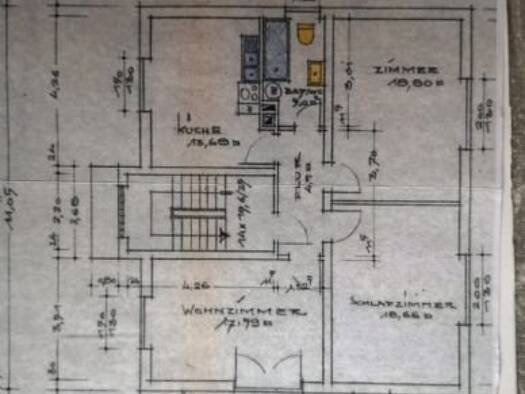 Küche ca. 13,63 m²; Wohnzimmer ca. 27,41 m²; Esszimmer ca. 16,52 m²; Schlafzimmer ca. 17,43 m²; Badezimmer ca. 6,70 m²; Diele ca. 8,23 m²; Abstellraum ca. 6 m²; Balkon ca. 3,87 m² (1/2 Anteil)