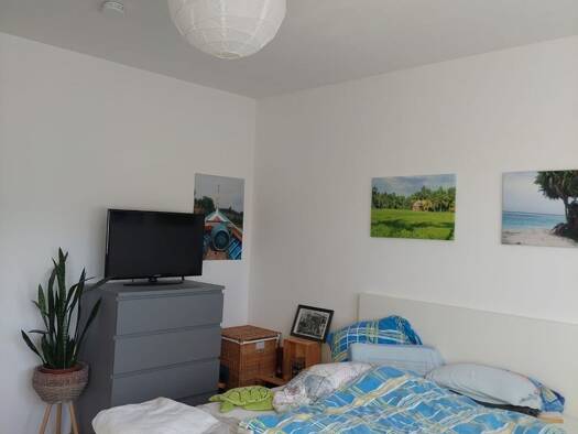Objektbeschreibung Voll möbeliertes Apartemnt für 2 Personen in gehobener Ausstattung. Komplett ausgestattet Küche, seperates Schlafzimmer, Bad mit Dusche, 2 Balkone. Waschmaschine und Trockner im Ge...