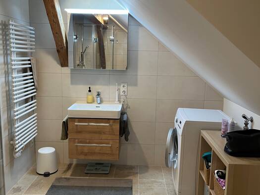 Wir vermieten eine ruhige Mansardenwohnung mit einem Schlafzimmer, großem Wohn-Essbereich und Bad. Im Keller ist eine Sauna die beiden Wohnparteien zur Nutzung bereit steht. Alternativ kann ein Raum ...