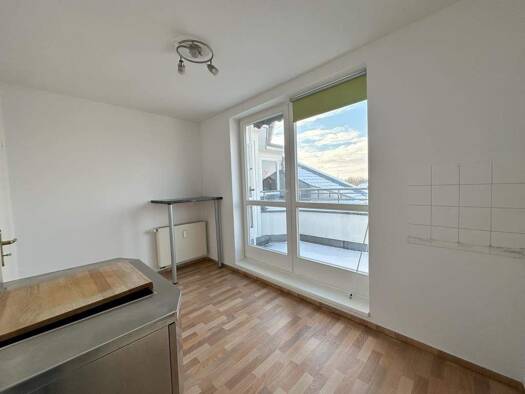 Die Wohnung bietet eine geräumige, teilweise zum Wohnzimmer hin offene Küche mit viel Platz für Küchenmöbel und einen gemütlichen Sitz- /Essbereich. Ausgestattet sind die Wohnräume mit Laminat, im Ba...