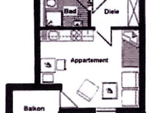 Objektbeschreibung Schöne 2 Raumwohnung mit großer Wohnküche. Vom geräumigen Flur sind alle Zimmer zu erreichen. Die Küche ist eine große Wohnküche von der aus es auch auf den Balkon geht. Das Badezi...
