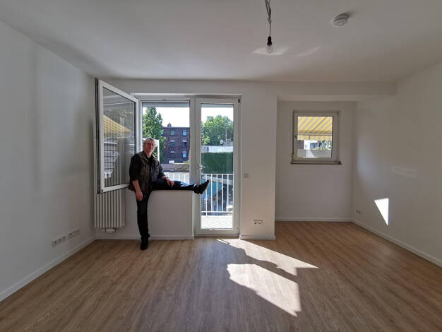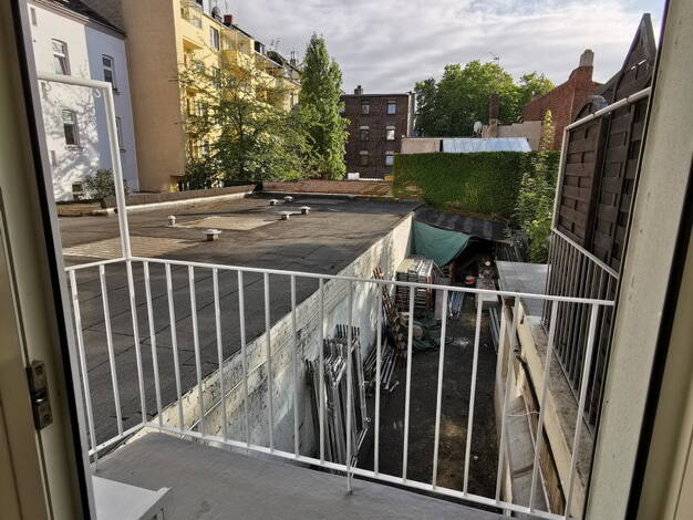 Das Haus liegt im Stadttel Oberbilk Nähe Oberbilker Markt mit Amts- und Landgericht. Es ist ein typischer Wiederaufbau mit zweckmäßigen Wohnungen. Unser 1-Zimmer Appartement mit Kochnische und Bad befindet sich im ersten Stock. Der Blick vom Balkon nach Süden geht in den ruhigen Innenhof. Das zweckmäßige und gut geschnittene Badezimmer mit Wannenbad ist frisch saniert.