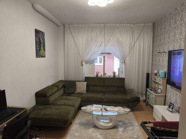 Objektbeschreibung schöne Wohnung in einem Mehrfamilienhaus mit insgesamt 8 Parteien. Raumaufteilung Großes Wohnzimmer mit Balkon.