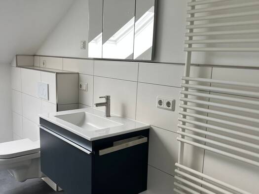 Moderne gepflegte 3-Zimmer-Dachgeschosswohnung mit Balkon & Gartenanteil in Wolfhagen In einem gepflegten 2-Familienhaus in ruhiger und zentraler Lage von Wolfhagen Stadt wird diese hochwertige Dachgeschosswohnung mit ca. 90m² Wohnfläche zur Vermietung angeboten. Der hohe Kniestock von ca. 1,40 m sowie eine Deckenhöhe von über ca. 2,65 m sorgen für ein außergewöhnlich großzügiges und luftiges Raumgefühl. Ausstattung & Raumaufteilung • 3 Zimmer • Großer, offener Küchen-, Wohn- und Essbereich • G...