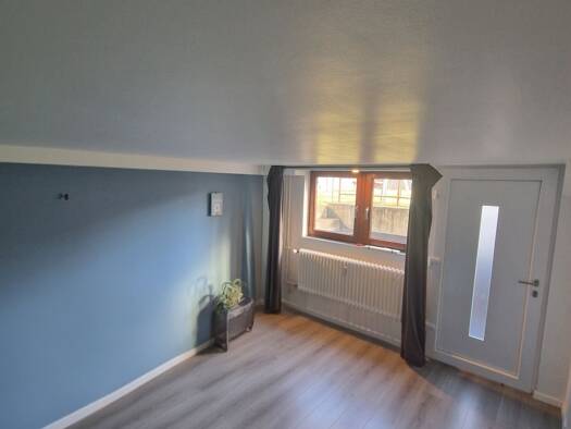 In einem 2025/2026 vollständig sanierten, denkmalgeschützten Fachwerkhaus steht im 1. OG und DG diese hochwertig ausgestattete 5-ZKB-Maisonette- Wohnung zur Vermietung. Der Hauseingang befindet sich auf der rückwärtigen, straßenabgewandten Seite. Die Zufahrt erfolgt über eine gemeindeeigene Straße. Direkt am Haus besteht die Möglichkeit für die Mieter des Hauses zwei PKW zu parken. Wohnungsaufteilung: 1. OG (ca. 64,3 m² Wohnfl.): Diele, 3 Wohnräume, - tagesbelichtetes Bad (Badewanne und Dusche)...