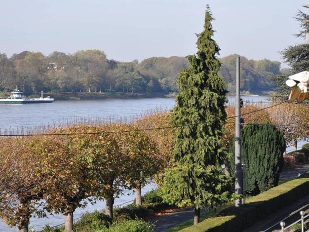 Exklusive Wohnung in denkmalgeschützter Villa mit direktem Panorama-Rheinblick. Hoher Servicestandard mit regelmäßigem Reinigungsservice inklusive. Aufteilung: Wohn/ Esszimmer, Schlafzimmer mit Doppelbett, Arbeitszimmer, große Küche, Diele, Tageslichtbad mit WC/ Wanne und großer Dusche, 2 Balkone, 1 franz. Balkon, separater Abstellraum im Treppenhaus.