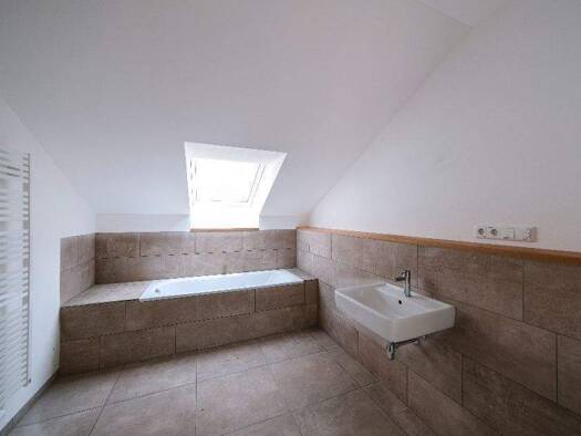 Sonnige 3-Zimmer-Dachgeschosswohnung in Südhanglage am Harzberg in Miesbach - 2 Zimmer + offene Wohn-Ess-Küche mit Echtholzparkett (Eiche) - Bad mit ebenerdig gefliester Regendusche, Badewanne und WC...
