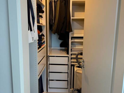 Die Wohnung besteht aus einem Wohnzimmer mit offener Küche, von dem auch ein Balkon abgeht. Außerdem gelangt man vom Wohnzimmer in das Schlafzimmer der Wohnung. Im Flur befindet sich zudem ein kleiner Abstellraum.