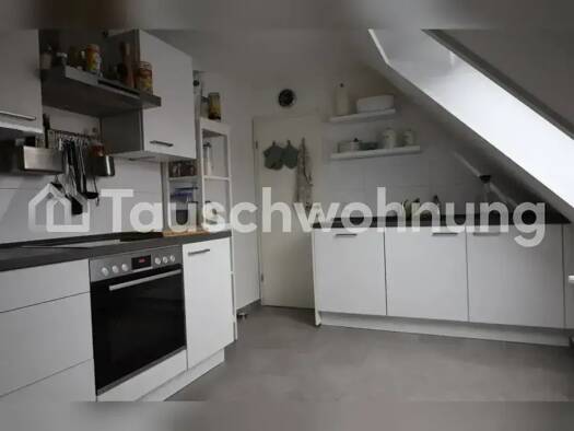 Es handelt es sich hierbei um ein Tauschangebot. (Anbieter-ID: 401361) Biete meine wunderschöne Dachgeschosswohnung zum Tausch. Das Dachgeschoss wurde erst vor ca 8 Jahren ausgebaut, daher ist die Wohnung gut isoliert, sehr hell, hat überall schicken Naturholzboden, eine neue Küche und es gibt ein geräumiges Badezimmer mit Dusche. Es handelt sich um ein Studio, so dass die 45 qm, abgesehen vom Bad, komplett offen sind. Der Schlafbereich ist im Dachgiebel und über eine Leiter erreichbar. Lage Di...
