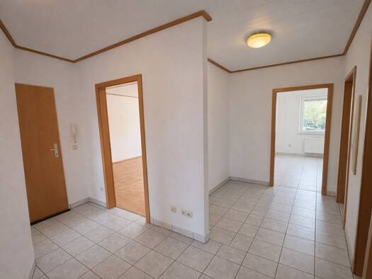 Die 3-Zimmerwohnung befindet sich im 2. OG des vorderen Hauses eines Gebäudekomplexes mit insgesamt 16 Wohnungen, diverse Kellerräume, einer Tiefgarage und einer Gewerbeeinheit. Über die vom Innenhof erreichbare Hauseingangstür gelangen Sie in das Treppenhaus des Objektes. Am Treppenhaus sind insgesamt nur 5 Wohnungen angeschlossen. Die Wohungen sind alle über die Treppe bzw. dem Personenaufzug zu erreichen. Durch die Wohnungseingangstür kommen Sie in den Flur der Wohnung. Von hier aus lassen s...