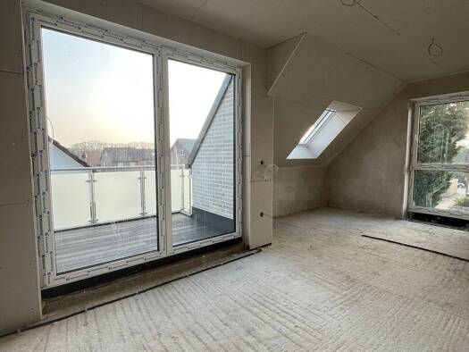 Diese moderne und gut geschnittene Dachgeschosswohnung befindet sich in einem hochwertigen Neubau aus dem Jahr 2025 in attraktiver Wohnlage von Bocholt. Mit einer Wohnfläche von ca. 61,33 m² bietet die Wohnung eine durchdachte Raumaufteilung mit zwei Zimmern und eignet sich ideal für Singles oder Paare. Der helle Wohn- und Essbereich bildet den Mittelpunkt der Wohnung und bietet direkten Zugang zur Loggia, die zu entspannten Stunden im Freien einlädt. Große Fensterflächen sorgen für eine angene...