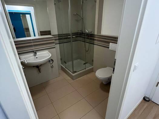 Diese helle Wohnung im zweiten Stock zeichnet sich durch eine gehobene Innenausstattung aus und kann zum 01.07.2026 bezogen werden. Über das gepflegte Treppenhaus gelangen Sie in Ihr neues Zuhause! Im Objekt angekommen betreten Sie als erstes den Flur, welcher ausreichend Platz für eine Garderobe sowie einen Schuhschrank bietet und Zugang zu dem Abstellraum bietet. Rechts vom Eingangsbereich befindet sich ein gut geschnittenes Schlafzimmer. Daneben findet sich ein Badezimmer mit WC, Duschkabine...