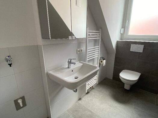 Die moderne 3-Zimmer-Dachgeschosswohnung befindet sich in einem 2024 errichteten Mehrfamilienhaus mit 6 Parteien. Das Bad hat einen Doppelwaschtisch, eine frei begehbare Dusche und eine Badewanne. Es...