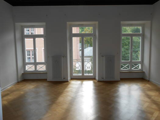 Stilvoll wohnen im Herzen von Bad Ems. Beim Betreten des ca. 30qm großen Salons stockt einem der Atem angesichts der verzierten Kassettendecke, dem aufwändigen Fischgrätenparkettes und den bodentiefen Sprossenfenstern. Die Belle Etage des Hauses in der Römerstraße ist lichtdurchflutet. Zur Römerstraße und damit nach Süden liegen zwei weitere große Räume mit ca. 3,80 Meter hohen Decken. Die Wohnung hat auf ca. 200m² drei Balkone, 6 Räume, davon 4 Schlafzimmer und eine separate Küche. Sie liegt i...