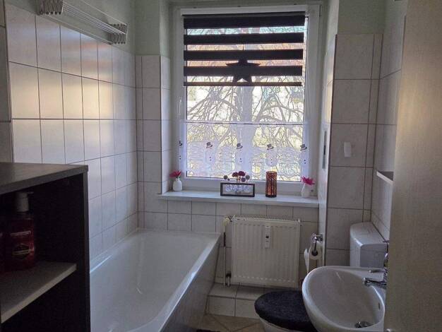 - Flur mit ausreichend Platzangebot für Ihre Garderobe und Co. - sep. große, helle Küche mit Essbereich - eigene geräumige Abstellkammer auf 1/2 Treppe im Hausflur - gefliestes Bad mit Wanne und Tage...