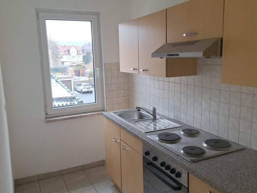 Sanierte 4 Raumwohnung in Eisenberg mit Fernsicht. Das innen liegende Bad vefügt über eine Wanne. Auf dem Balkon lässt es sich entspannen und der Natur lauschen.