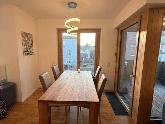*** Light-filled penthouse in Wiesbaden's sought-after Europaviertel district *** This well-designed 3-room penthouse apartment with a sun terrace and underground parking space is located in a desira...
