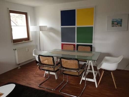Helles, freundlich möbliertes WG-Zimmer in einer 4-Zimmer-Wohnung im 1. OG eines Zweifamilienhauses im Norden Nürnbergs/Heroldsberg. Das Zimmer verfügt über ein Einzelbett, Schreibtisch mit Stuhl, ein Waschbecken und einen Kleiderschrank. Bettwäsche wird vom Vermieter kostenlos gestellt. Die voll eingerichtete, gemeinsame Wohnküche ist ausgestattet mit allen Utensilien des täglichen Bedarfs wie Geschirr, Geschirrspüler, Herd, Mikrowelle etc. Hier befindet sich ein Fernseher sowie ein Radio zur ...