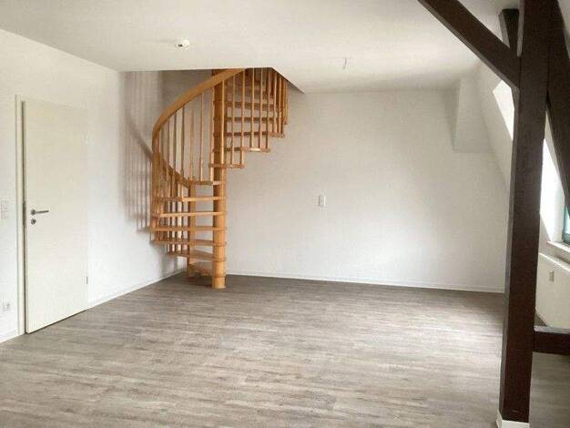 Die großzügig geschnittene 3-Zimmer-Wohnung erstreckt sich über 2 Etagen. Im unteren Bereich befindet sich die Küche, Kinderzimmer, ein Bad und das große Wohnzimmer. Auf der 2. Etage finden Sie das g...