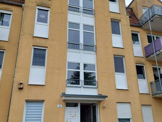 Das ruhige zentral gelegene Mehrfamilienhaus in Großräschen verfügt über 8 Wohnungen und 2 Läden im Erdgeschoss. Die kleine aber feine Wohnung liegt im 1. Obergeschoß mit Balkon zum Hof.