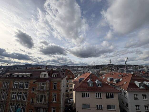 Voll möblierte und voll ausgestattete (Bettwäsche, Handtücher) 2-Zimmer Loft-Wohnung im 4. Obergeschoss eines charmanten Altbaus in Stuttgart West. Mit Blick über den grünen Bismarckplatz nach vorne ...