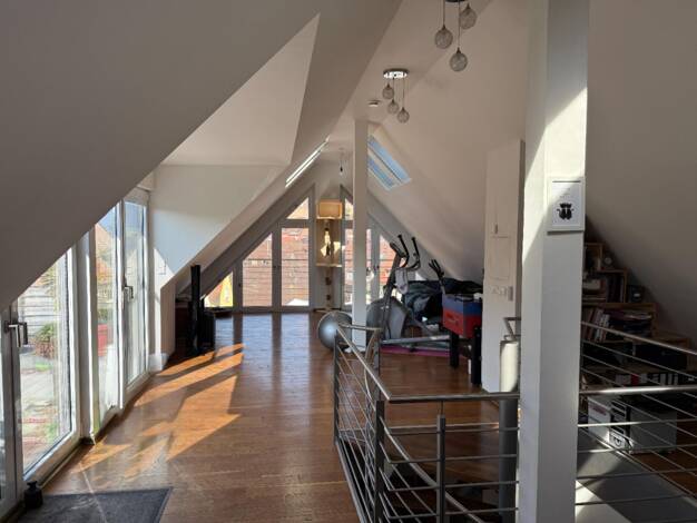 Kurzbeschreibung Lichtdurchflutete Maisonettwohnung auf 2 Etagen (2. OG + DG) mit offenem, türenlosem Grundriss und großzügigem Studiocharakter. 98 m² Wohnfläche, zwei Süd-West-Balkone und ein verglaster Süd-Wintergarten machen die Wohnung besonders hell und sehr attraktiv. Ideal für einen Single, maximal 2 Personen (Nichtraucher). Eckdaten: - 98 m² Wohnfläche - 2. OG und DG - offener Wohn-/Essbereich + offener Schlafbereich in der oberen Ebene (getrennt durch eine Wendeltreppe, KEINE Tür) - 2 ...