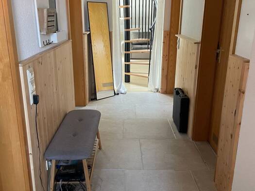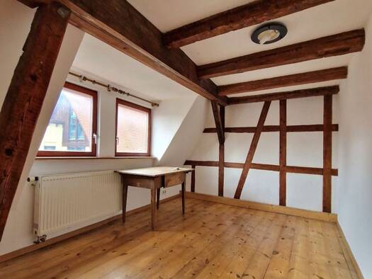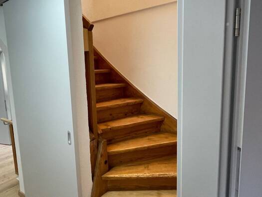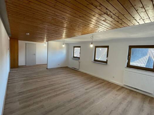 Einziehen und Wohlfühlen. Wohnungsneubau/-ausbau 2014. Das Haus wurde 2014 ebenfalls umfangreich saniert und ausgebaut. Großzügige Maisonette im Dachgeschoss (2 Stock) im 4 Parteien Haus. Die Wohnung besteht aus: Wohnzimmer, Schlafzimmer Eltern, Kinderzimmer oder Büro, Essküche incl. EBK gegen Gebühr (60 € monatlich),Bad mit Wanne und Dusche, extra Toilette, sehr große Dachbühne (Maisonette) mit Fenstern und grandioser Aussicht, riesen Balkon -ebenfalls mit Traumaussicht. 2 PKW Stellplätze (geg...