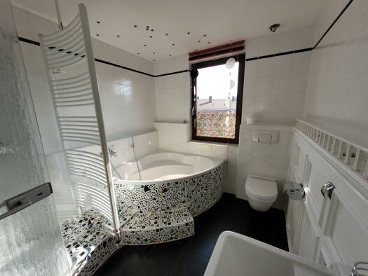 Der Eingangsbereich beeindruckt mit einem stilvollen, klassisch-eleganten Erscheinungsbild. Der schwarz-weiß geflieste Schachbrettboden verleiht dem Raum eine zeitlose Note, während die geschwungenen...