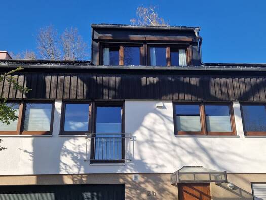 Die Loggia-Wohnung ist im 3. und obersten Stock mit Blick in Nürnberger Wald. Die Wohnung kann ab 1.7.2026 bezogen werden. Besichtigungen innerhalb der Wohnung sind nach Absprache möglich. Weitere Fotos der Zimmer auf Anfrage. Das Haus befindet sich in einem ruhigen und wunderschönen Villenviertel in Nürnberg Mögeldorf. Sie sind 15 Minuten (Auto) von der Innenstadt entfernt, aber wohnen in unmittelbarer Nähe des Reichswaldes. Die Wohnung im obersten 3. Stock (mit Lift), bietet ein exklusives ho...