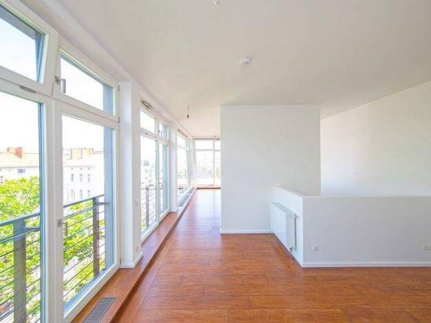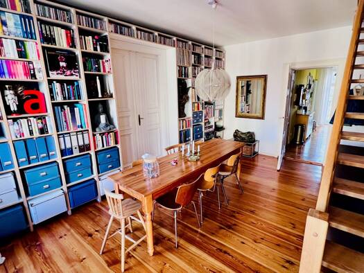 Diese rund 105 m² große Maisonettewohnung liegt im ausgebauten Dachgeschoss eines Altbaus von 1882 – direkt im Vorderhaus der Schönhauser Allee. Der Grundriss erstreckt sich über zwei Etagen mit drei...