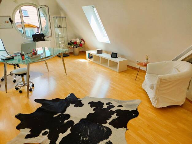 Neues Jahr, neue Wohnung, neues Leben 58,86 qm-Dachgeschoß-Maisonette-Wohnung (46,18 qm n. WfVO) Wenn Ihnen nach Weihnachten zumute ist, wird die Aussicht Sie faszinieren: Durch das Panoramafenster I...