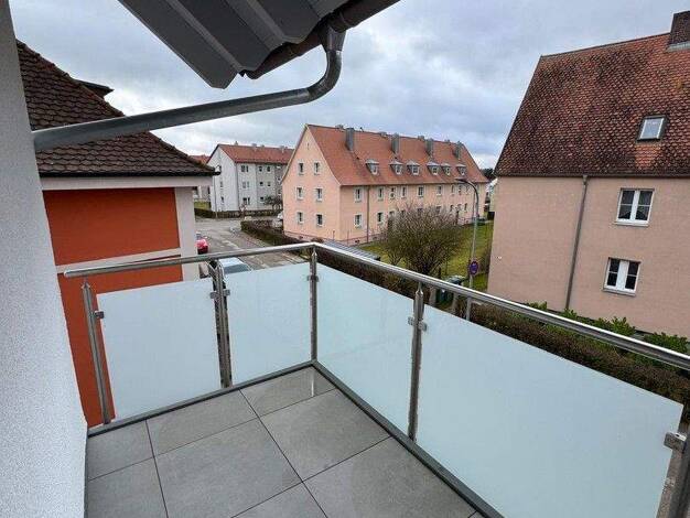 Helle, offen gestaltete 2-Zimmer-Maisonettewohnung mit zwei Süd-Balkonen. Im Süden schließen sich Felder an, im Norden liegen die Städte Stein und Nürnberg. Die erste Etage besteht aus einem Wohn-Ess...