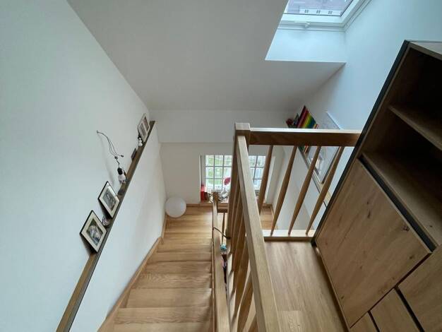 Wunderschöne extravagante Maisonette mit EBK (monatlicher Aufpreis 60,00 EUR Pflicht) offener Wohn/Essbereich. Zwei vollwertige Bäder, eines in der unteren Ebene und eins in der oberen Ebene. Die EBk ist mit allen elektrischen Geräten ausgestattet. Am Wohnzimmer befindet sich der Balkon. Es gibt einen Mieterkeller und einen ASR in der Wohnung. Zur Wohnung gehört ein Stellplatz vor dem Haus. Der obere Wohnbereich ist durch die mäßigen Dachschräge sehr gemütlich. Die Mieterin würde einige passgen...