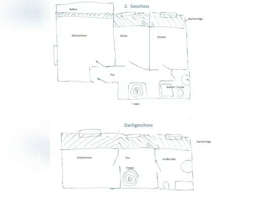 Die Wohnung ist im Obergeschoss und Dachgeschoss über zwei Ebenen des Hauses. Der separate Eingangsbereich befindet sich auf der Rückseite des Hauses. Die Einbauküche mit allen erforderlichen Geräten...