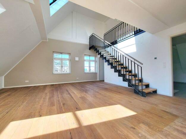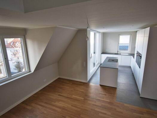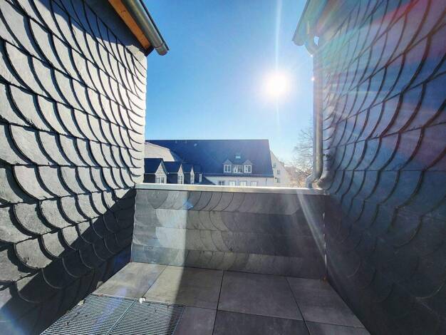 Diese schöne, frisch renovierte Maisonette-Wohnung mit einem fantastischen Skylineblick vom Balkon und einer Dachterrasse liegt im 5.OG eines Altbaus, wurde im Jahr 2002 neu ausgebaut. Auf der ersten Ebene befinden sich ein Wohnzimmer, ein Schlafzimmer, Küche und Bad, die zweite Ebene eignet sich als Arbeitsbereich sehr gut. Die Wohnung hat eine Energieeffizienzklasse C - Energieverbrauch ca. 6500 kWh p.a. Die Wohnung ist ab sofort frei und bezugsfertig. Bitte beachten Sie, dass es keinen Aufzu...