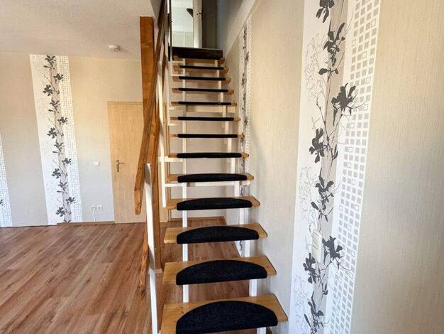 Objektbeschreibung Großzügige Maisonette Wohnung über zwei Etagen mit Wendeltreppe ins DG. Neuwertige Einbauküche (kann verbleiben). Raumaufteilung Großzügige Raumaufteilung, Wohnzimmer über 40 m², K...