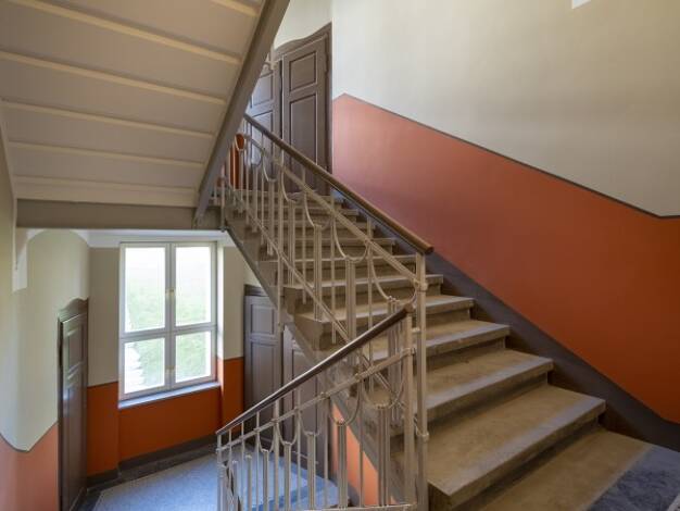 Unsere Wohnung befindet sich in einem sanierten, typischem Kaßberg-Mehrfamilienhaus mit ansprechendem Treppenhaus und grünem Hinterhof. Ein sicherer Aufenthalt für Kinder zum Spielen ist im Hof gegeben. Die Wohnung befindet sich in der 4. Etage. Eine Küche kann gegen Aufpreis durch den Vermieter eingebaut werden.