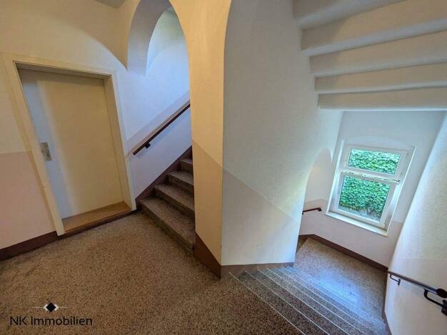 Das denkmalgeschützte Mehrfamilienhaus besticht durch seine kunstvoll gestaltete Fassade. Die Wohnung befindet sich im Dachgeschoss und kann bequem mit dem Fahrstuhl erreicht werden. Folgende Ausstattung erwartet Sie: - in der unteren Ebene geräumige große Küche mit großzügigem Essbereich für gemütliche Abende - Bad und WC getrennt, Bad mit Fenster, Badewanne, Dusche und Waschmaschinenanschluss - Wendeltreppe im Flur zur oberen Ebene mit gemütlichen Dachschrägen - großes Wohnzimmer mit Balken -...