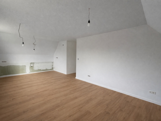 Hochwertig sanierte OG-Wohnung in 25746 Lohe-Rickelshof mit 63,40 m² Wohnfläche plus großer beheizter Nutzfläche im Dachgeschoss (33,04 m² Grundfläche; rechnerisch ca. 21,84 m² nach WoFlV, keine zugesicherte Wohnfläche) und Treppenhaus-Abstellfläche. Im Rahmen der anstehenden Dachsanierung werden auf dem Dachboden zwei Dachflächenfenster ergänzt. Die Sanierung ist noch in Fertigstellung. Neue Küche, modernes Bad, Fußbodenheizung, Wärmepumpe, Lüftungssystem, Fenster mit Dreifachverglasung, Stell...