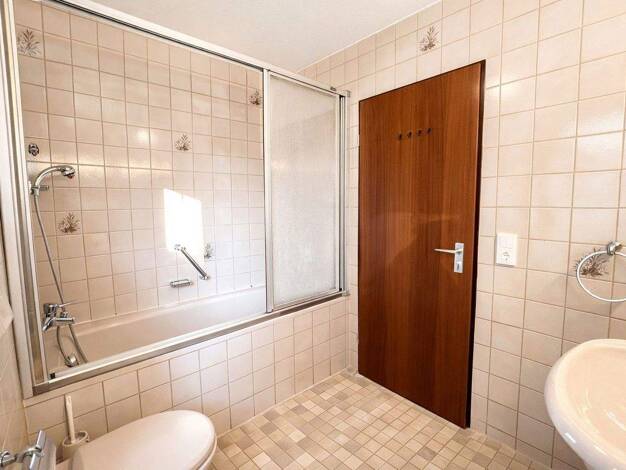 Die Haushälfte hat einen getrennten Eingang über Höhenweg 1. Sie wurde 1994 aus einem ehemaligen Scheunengebäude neu erbaut mit Ausnahme des Dachgeschosses, das mit Naturgebälk belassen wurde. Die Wohnung verfügt über eine Fußbodenheizung. Wenige Radiatoren. Schöne große Terrasse nach Süden ausgerichtet eingerahmt durch eine Buchenhecke.