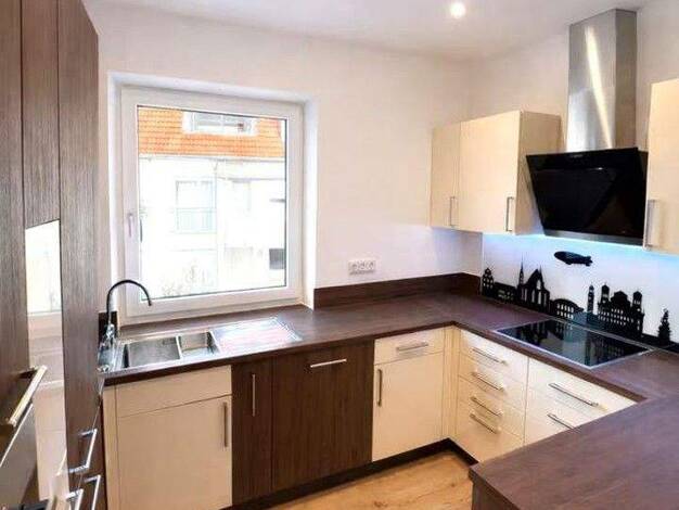 Objektbeschreibung Traumhaft schöne Maisonettenwohnung in einem hochwertig renoviertem Gutshof. Die Wohnung erstreckt sich auf zwei Ebenen und ist mit hochwertigen Materialien ausgestattet. Im Eingan...