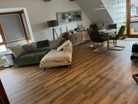 Vermietet wird ein Zimmer (18 m²) in einer 2,5 Zimmer-Wohnung. Die restlichen Räume (Küche, Bad, Gäste-WC, Abstellkammer, Gang) sind Gemeinschaftsfläche. Die noch fertigzustellende Dachterrasse neben dem Haus, sowie der Garten können auch entsprechend mitgenutzt werden. Das Zimmer ist mit einem Boxspringbett, Nachttischkästchen Schrank, höhenverstellbarem Schreibtisch, Stuhl und einem Spiegel ausgestattet. In der vorhandenen Küche befindet sich ein Ofen mit Herd, eine Mikrowellse, eine Spüle, e...