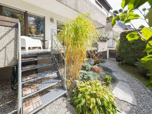 Diese sehr schöne, helle 2 Zimmerwohnung befindet sich im 1. Stock in einem ruhigen und familiären 5-Familienhaus in einem parkähnlichem Garten. Von der Straße gelangt man über einen bewaldeten Spazi...