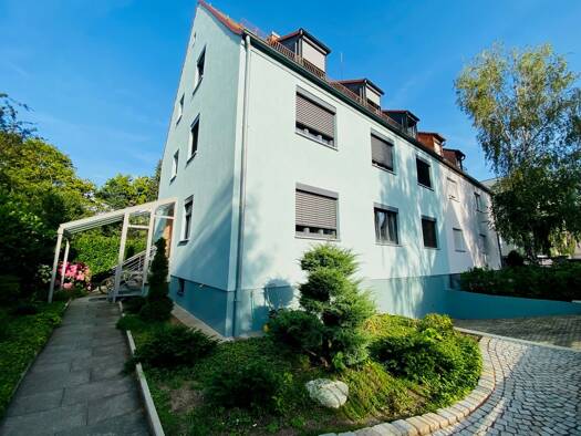 Objektbeschreibung Diese großzügige 3,5-Zimmer-Dachgeschosswohnung (BJ 2005) mit ca. 86 m² Wohnfläche befindet sich im 4. OG eines gepflegten MFH in einer ruhigen Seitenstraße im Nürnberger Süden – u...