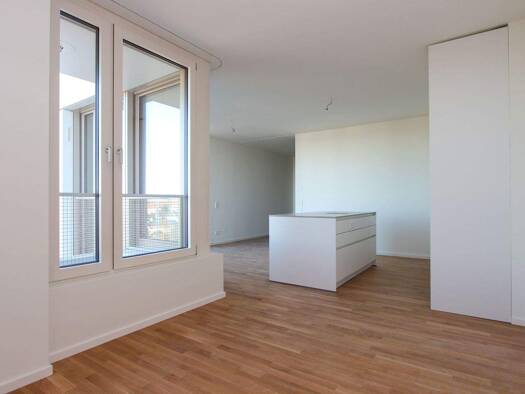 Loft Wohnung mit 2,5 Zimmern. In allen Zimmern bodentiefe Fenster. Raumhöhe knapp 4m. Eichen Parkett in allen Räumen. Modernes Bad mit Regendusche. Fußbodenheizung, Tiefgarage und Aufzug. Bergblick. ...