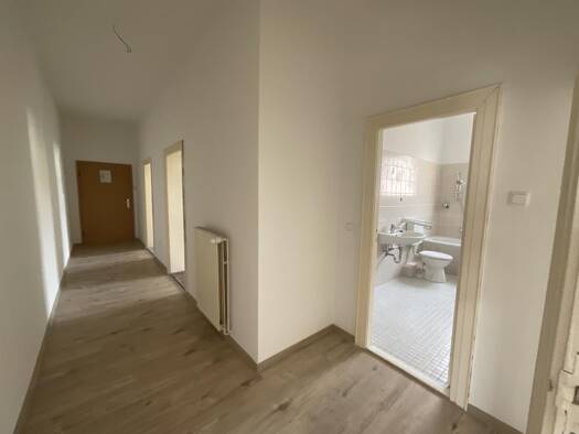 Die 3 Zimmer, Küche, Bad-Wohnung wurde mit einer komplett neuen Elektrik ausgestattet. In diesem Rahmen wurde auch alle Wand-, Boden- und Deckenbelege erneuert. Die Wände und Decken wurden mit Raufasertapeten versehen und weiß gestrichen. Die Böden wurden mit hellem Laminat in Holzoptik versehen. Die Wohnung befindet sich im 2. Obergeschoss eines gepflegten Mehrparteienhauses aus 1948. Besonderen Charme verleihen die hohen Decken und die alten Kassettentüren dieser Wohnung. Die Wohnung verfügt ...