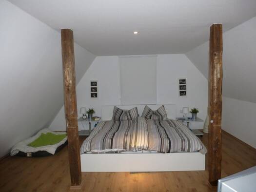 An der Stadtgrenze zu Herford haben wir auf unserem Hof eine Wohnung frei. Die Wohnung besteht aus Schlafzimmer, Küche-, Eß- und Wohnzimmer, Büro sowie Bad & Flur. Kaminanschluß ist vorhanden ebenso wie ein kleiner Kellerraum im Gemeinschaftskeller. Zur Wohnung gehört ein kleines Stück Garten mit Terrasse auf der Rückseite des Hauses (Südseite). Die Whg. verfügt über einen eigenen Hauseingang mit PKW Stellplatz direkt vor der Tür. Auch für ein eigenes Pferd (Wallach) können wir Ihnen eine große...