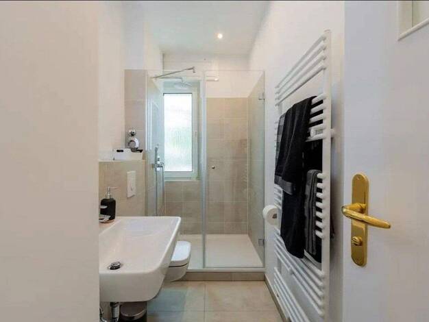 Die OG-Wohnung ist hell und großzügig gestaltet und verfügt über einen separaten Eingang mit eigenem Garten. Die weißen Einbauschränke in der Diele bieten reichlich Stauraum. Als Bodenbelag wurden in...
